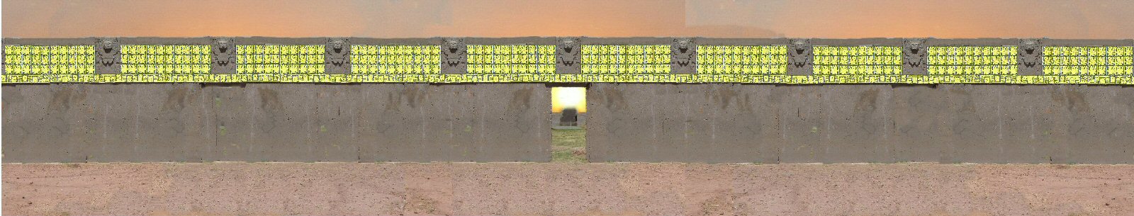 con puesto del sol cada noche sobre el muro y cada 18 dias arriba a un pilar a la derecha marcando un vigésimo parte del año.